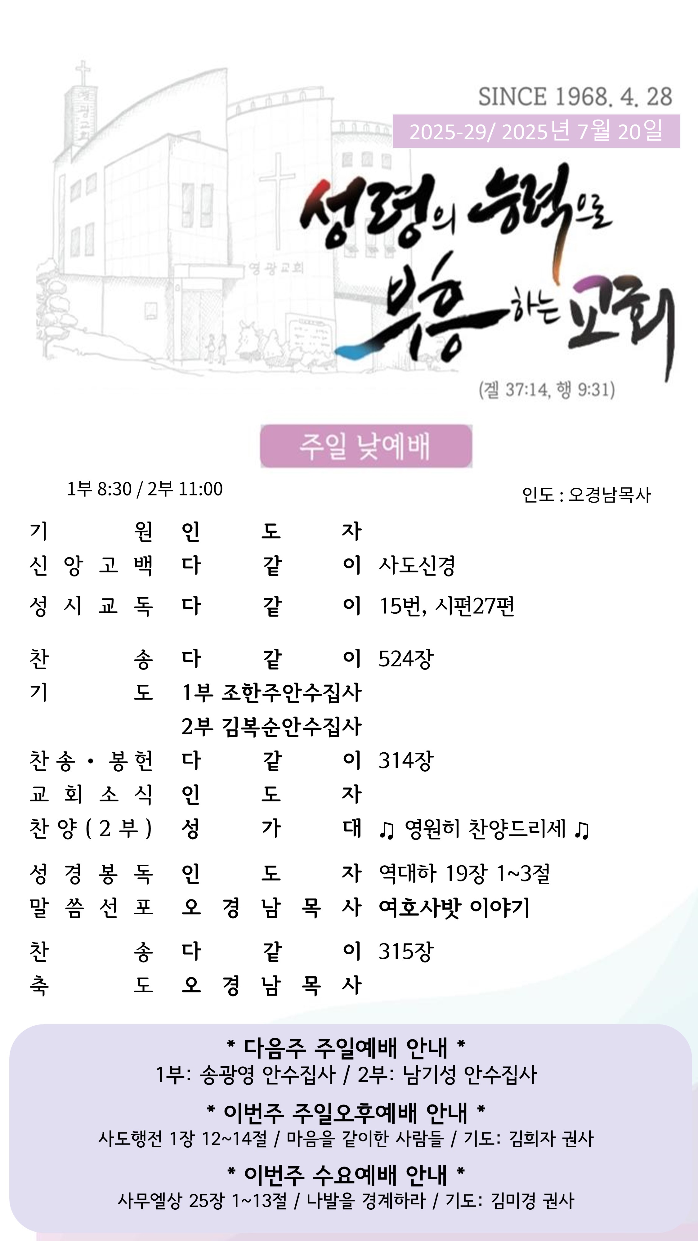 25년 7월 셋째주일(7/20) 주보입니다