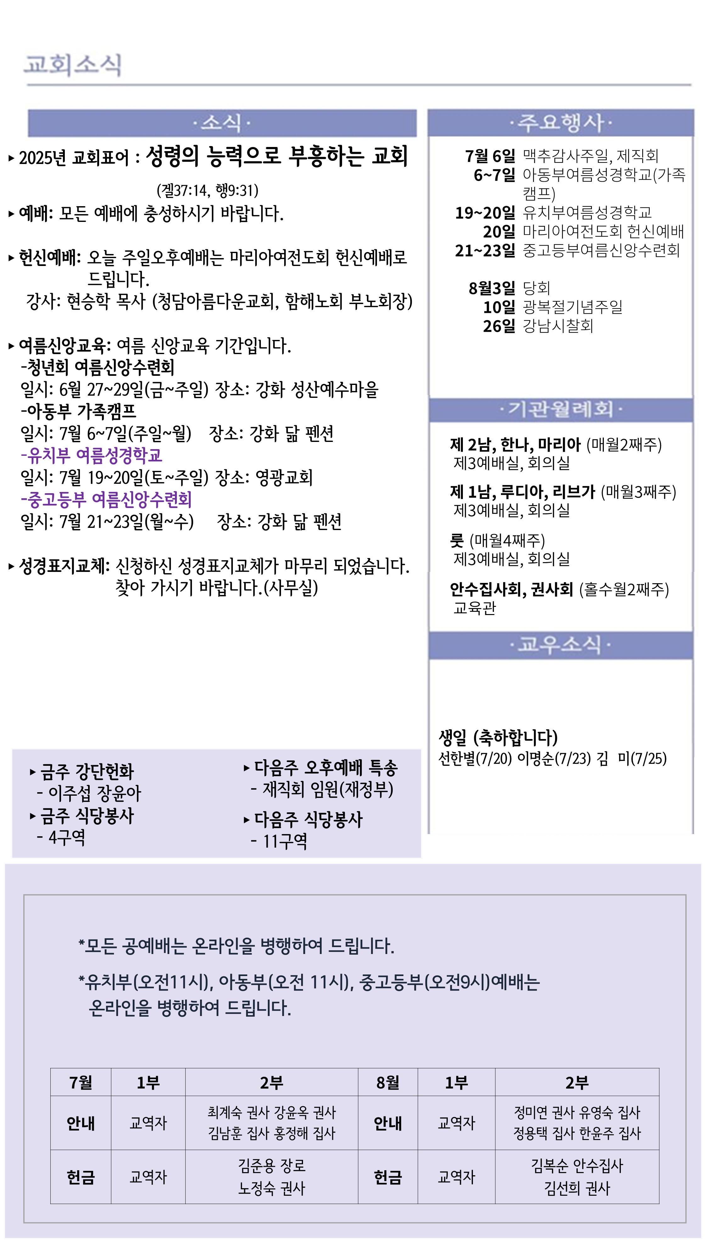 25년 7월 둘째주일(7/13) 주보입니다