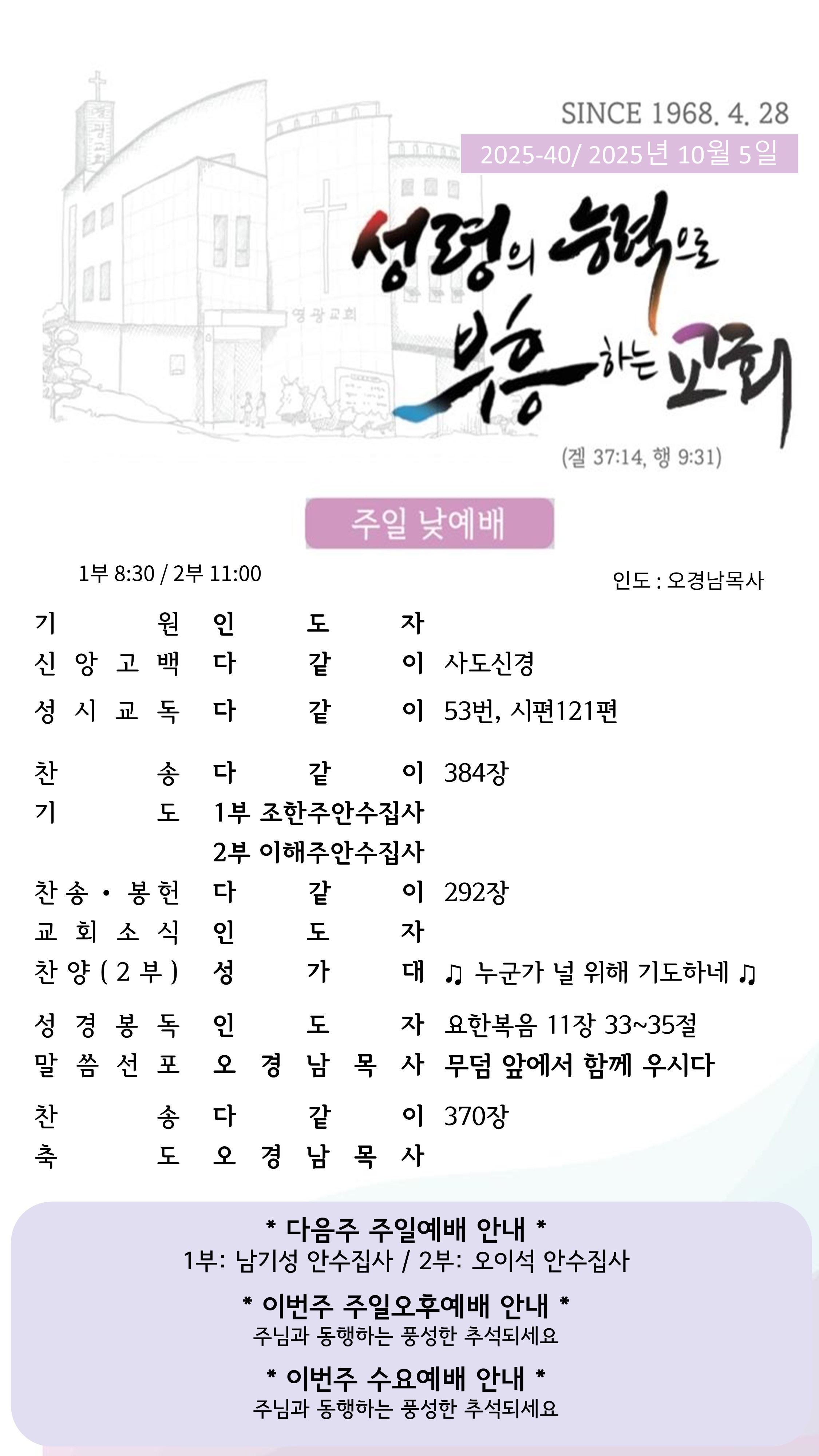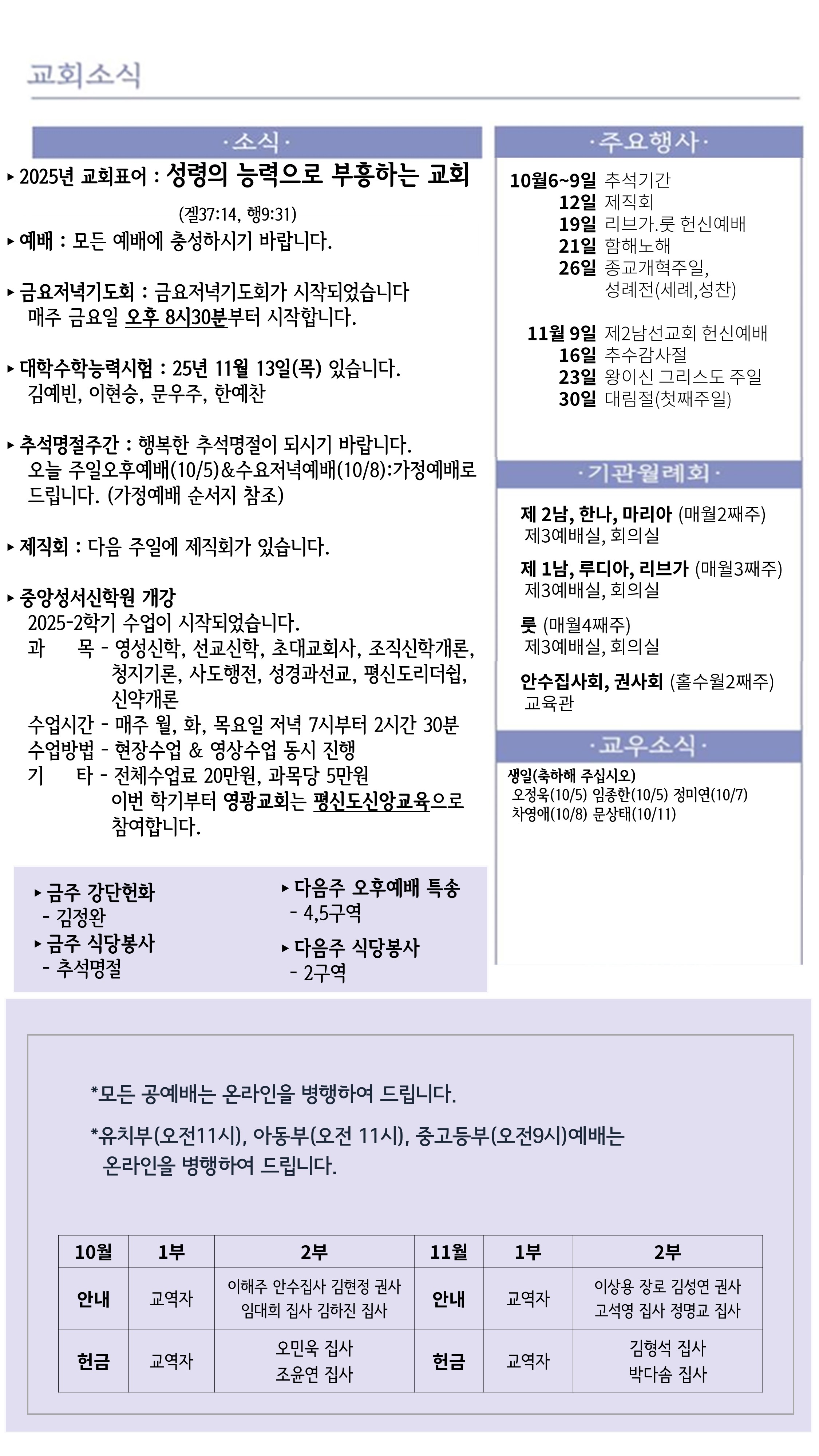 25년 10월 첫째주일(10/05) 주보입니다