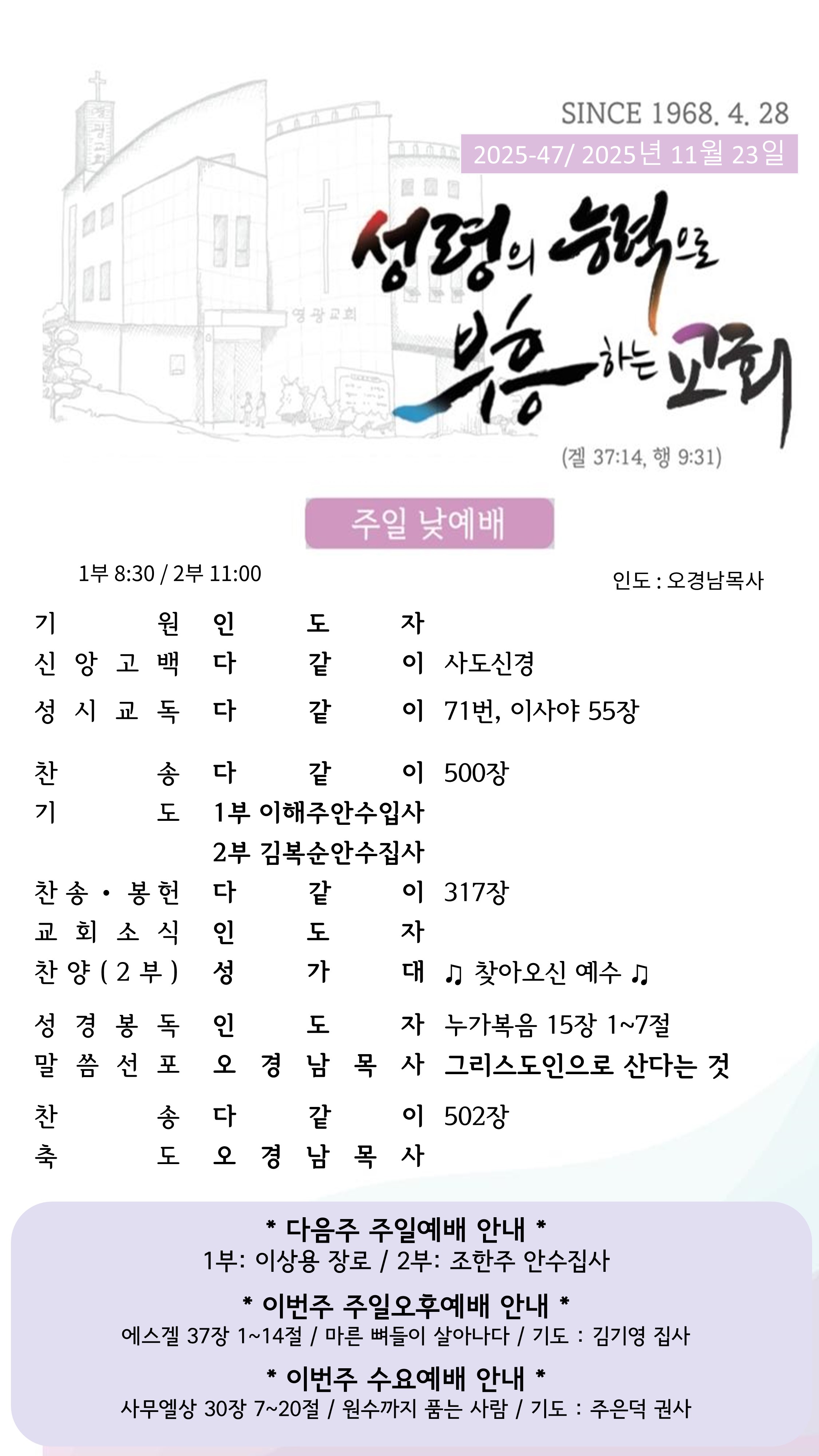 25년 11월 넷째주일(11/23) 주보입니다