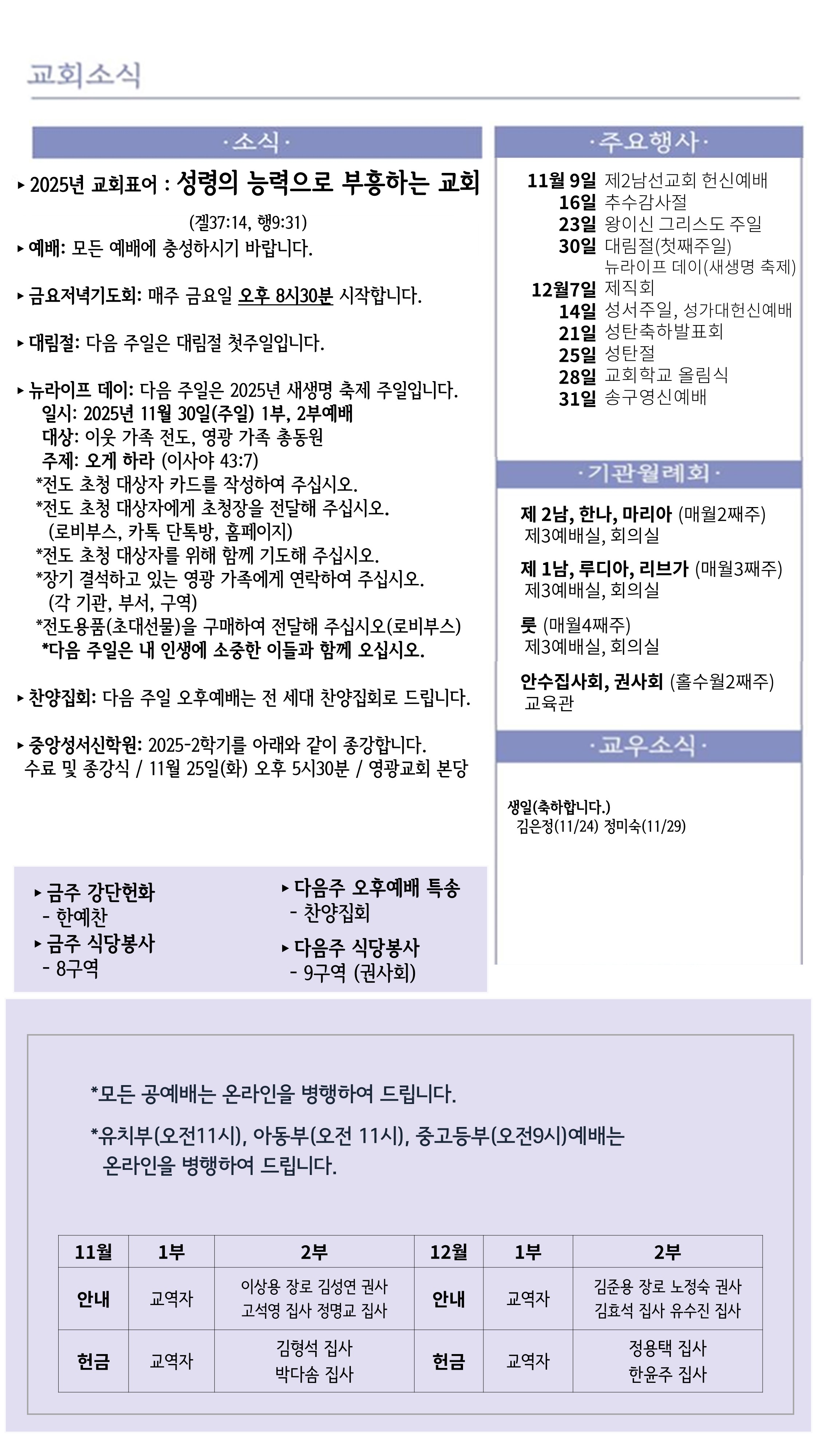 25년 11월 셋째주일(11/16) 주보입니다