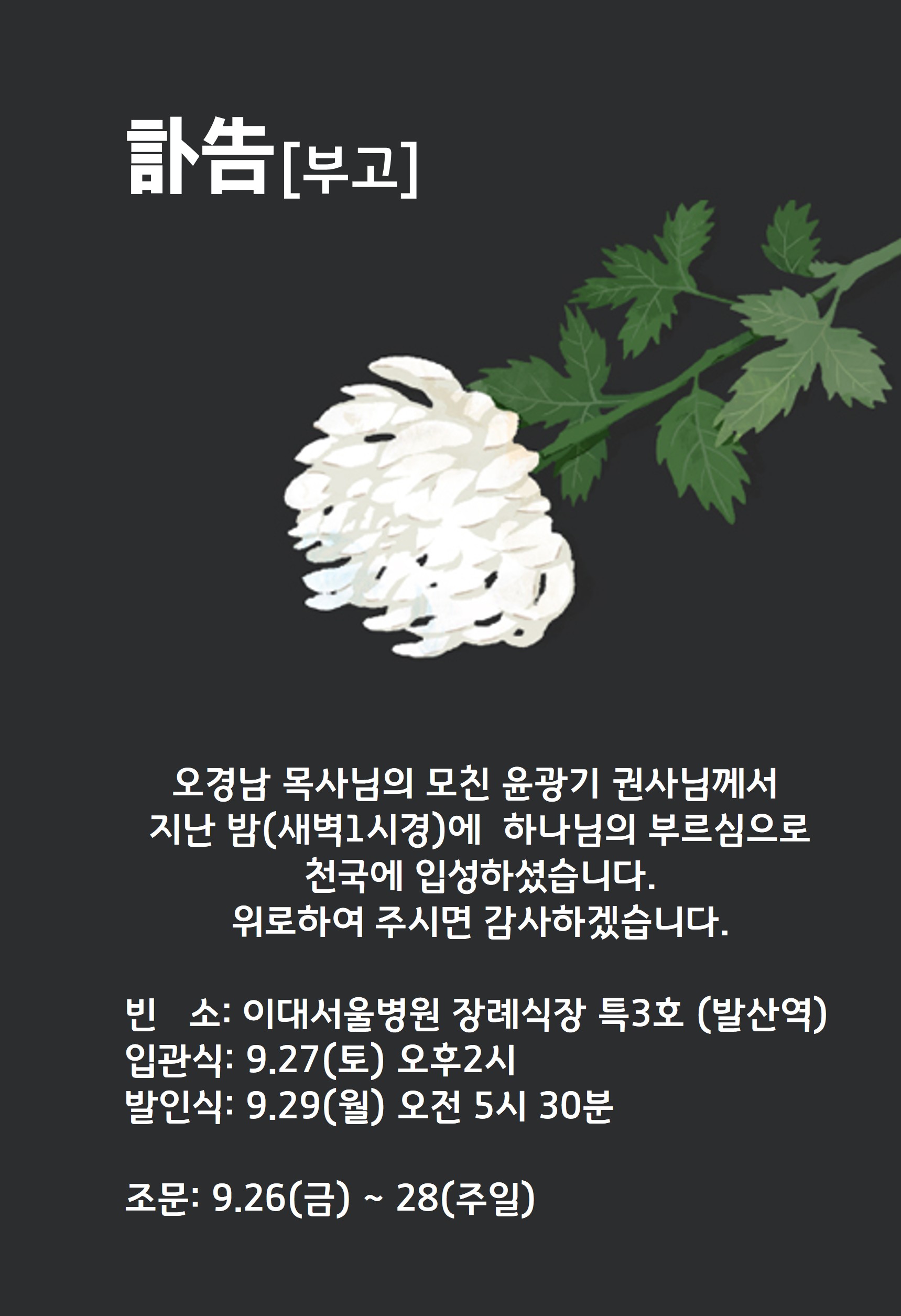 [부고]윤광기 권사님 (오경남 목사님 모친)